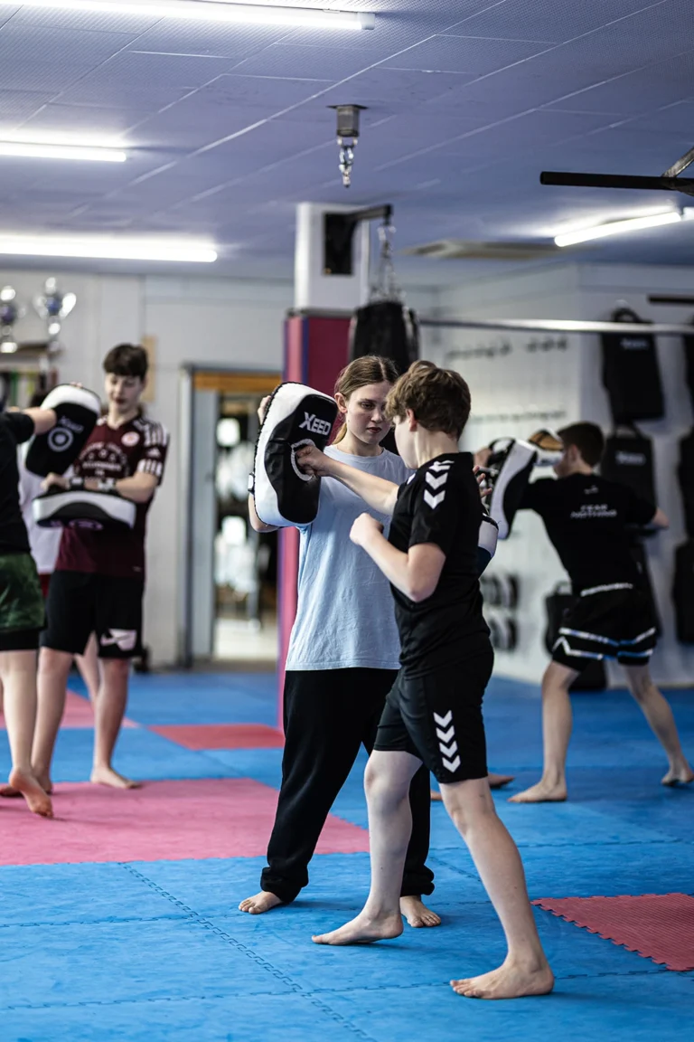 Muay Thai træning er en spændende og givende aktivitet for børn i alderen 7-11 år. I Odense tilbyder vi træning, der fokuserer på grundlæggende teknikker som slag og spark på puder, alt i en sikker og sjov atmosfære.